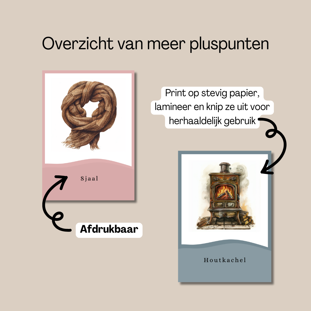 Als je de kaarten herhaaldelijk wilt gebruiken, raden we aan om ze voor het beste resultaat op stevig papier te printen. Daarna kun je ze lamineren en uitknippen. Dit zorgt ervoor dat jij en de kinderen er langer plezier van hebben en de kaarten keer op keer kunnen gebruiken.