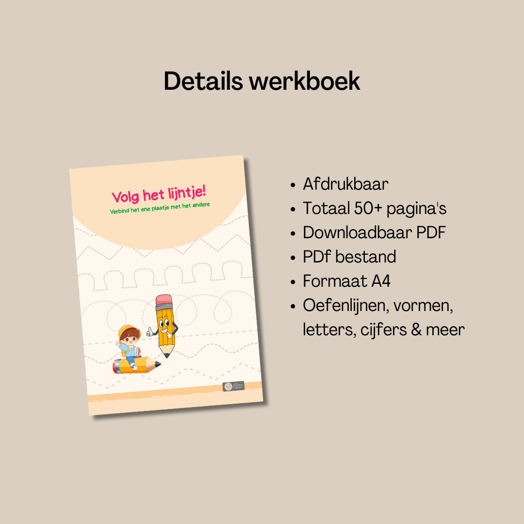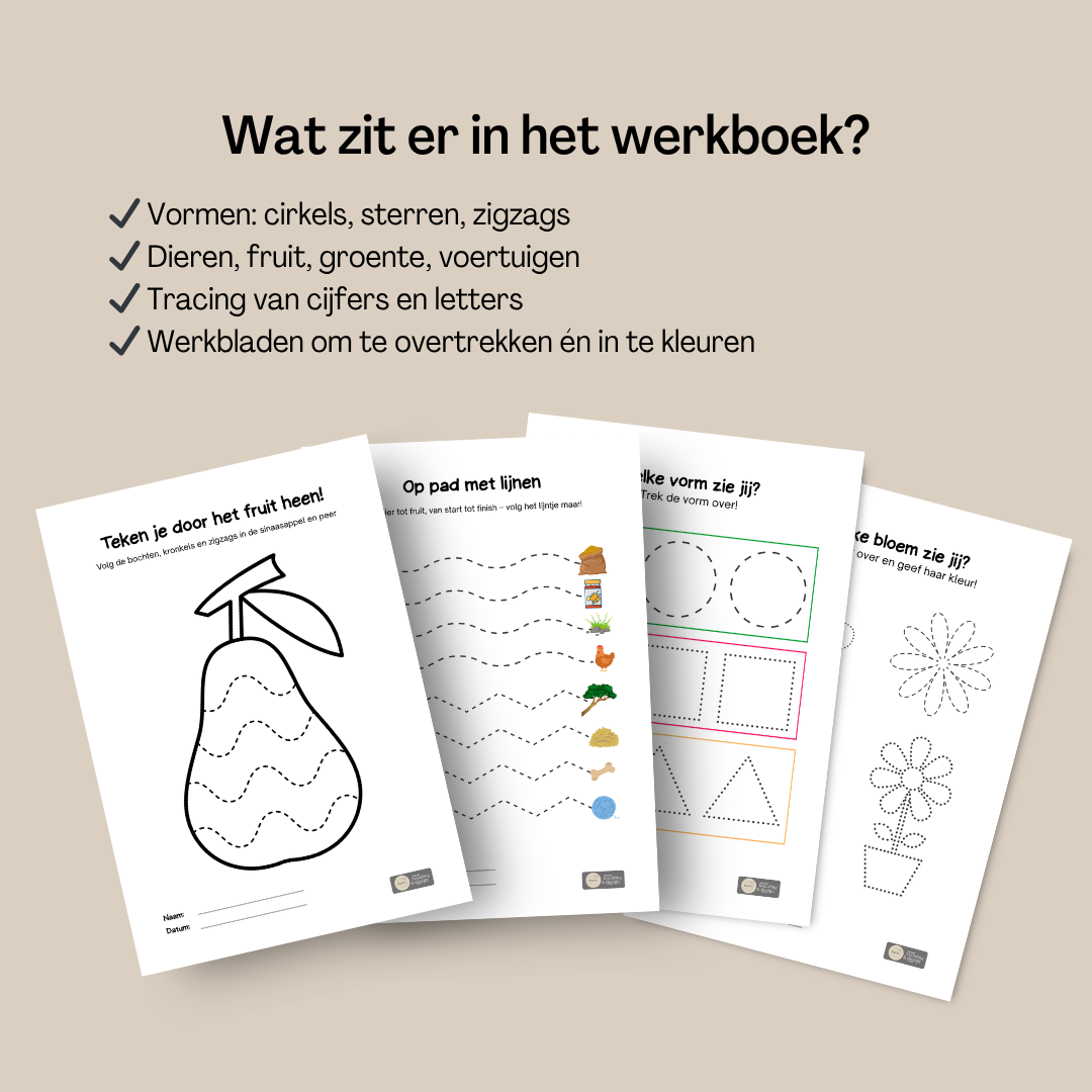 Door te oefenen met rechte lijnen, bochten, zigzags en vormen leert je kind beter sturen met de hand. De potloodgreep wordt sterker, stabieler en natuurlijker. Dit vormt de basis voor goed leren schrijven op school.